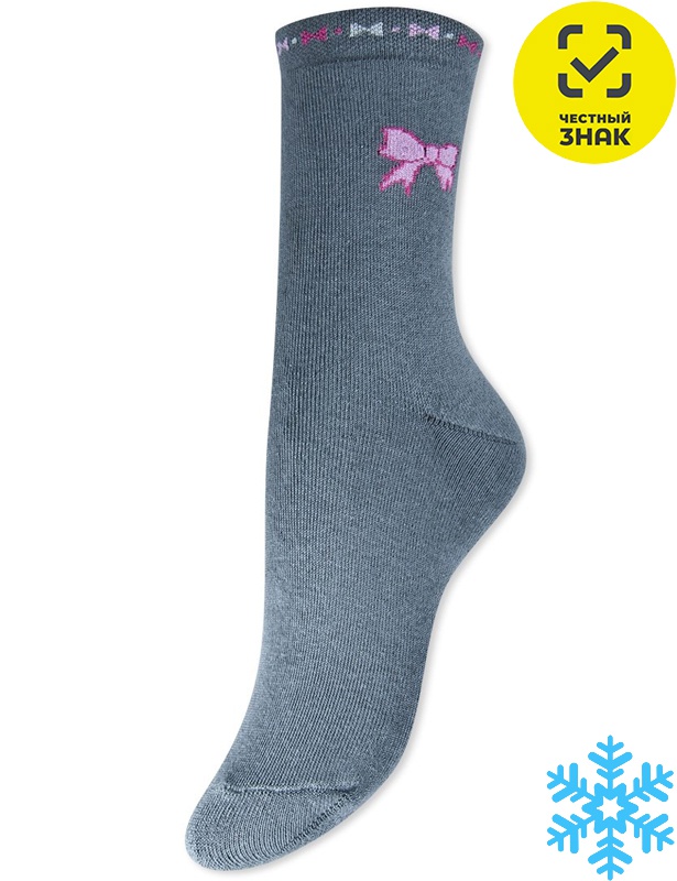 Женские теплые плюшевые носки, на паголенке рисунок «Бант».