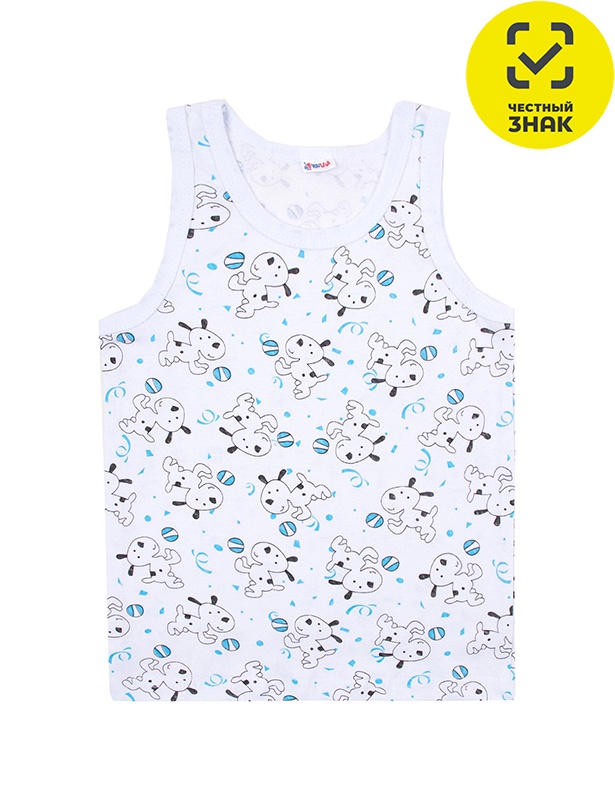 Классическая детская майка из набивного полотна, проймы и ворот окантованы, цвета ассорти.