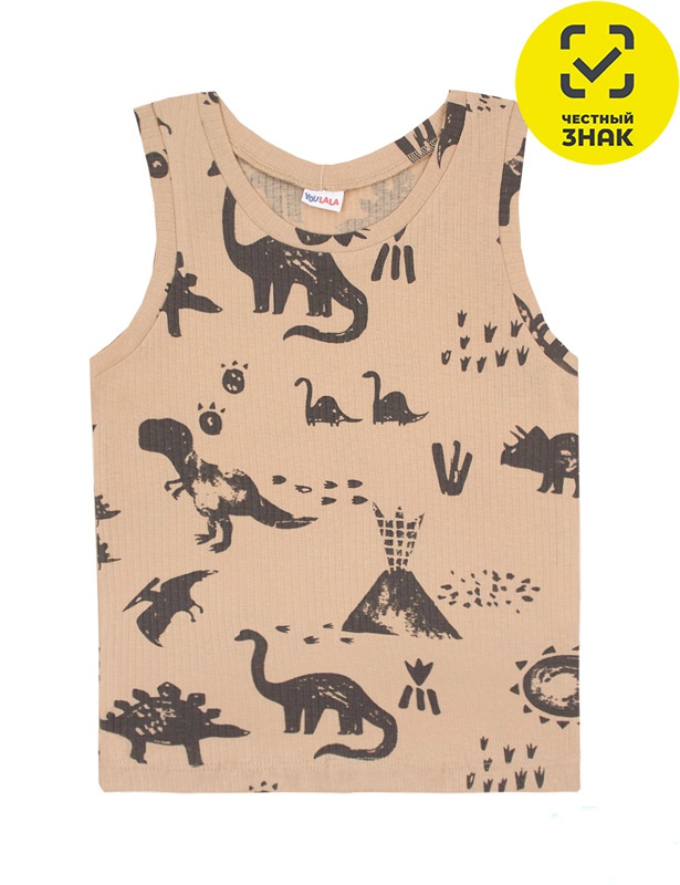 Майка детская классического кроя из трикотажного полотна с набивным рисунком. Горловина и проймы майки обработаны окантовкой.