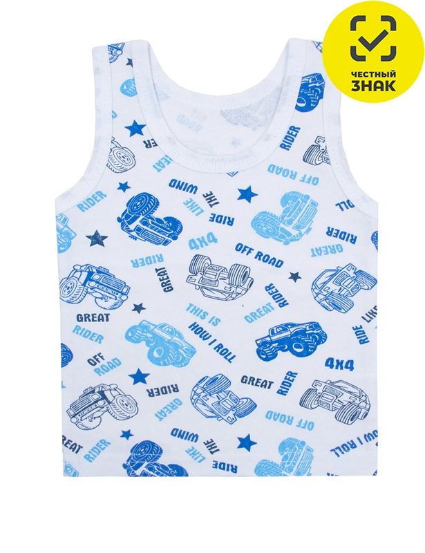Классическая детская майка из набивного футера с начесом, проймы и ворот окантованы