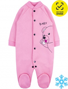 Комбинезон ясельный из футера трехнитки с начесом, длинный открытый рукав-реглан на манжете, центральная застежка на кнопках, воротник-стойка, закрытая ножка, декорирован принтом.