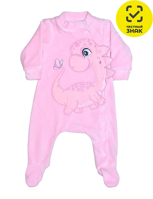 Комбинезон ясельный из велюра, правая сторона переда с вышивкой-аппликацией. Рукав втачной длинный на манжете, в горловине воротник-стойка. Застежка асимметричная на кнопки.