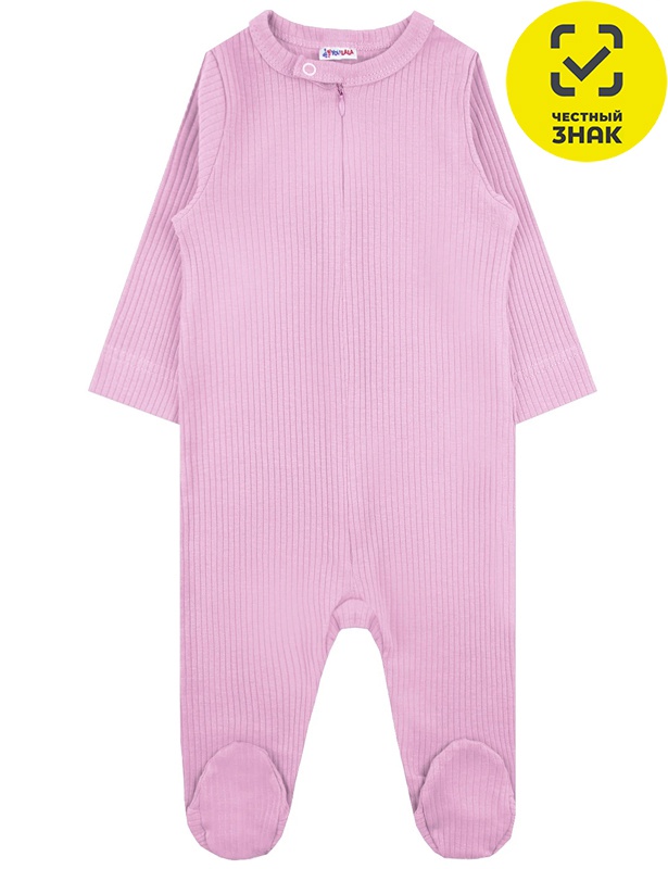 Комбинезон ясельный из рибаны, длинный открытый рукав на манжете, центральная застежка на молнию, воротник с кнопкой, закрытая ножка.