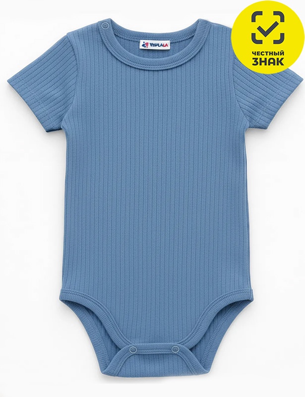 Боди из рибаны с короткими рукавами, округлая горловина, застежка на кнопки по плечу и низу.