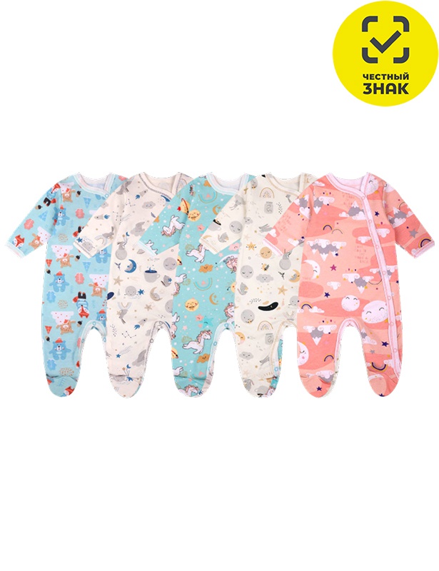 Комбинезон ясельный из набивного полотна с длинным рукавом, смещенная застежка на кнопках, край обработан рибаной.