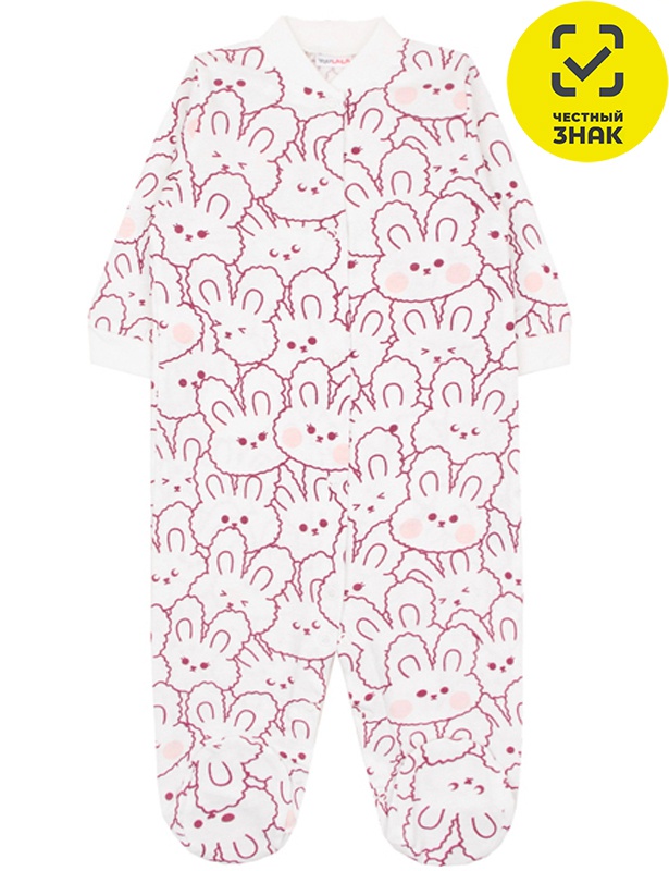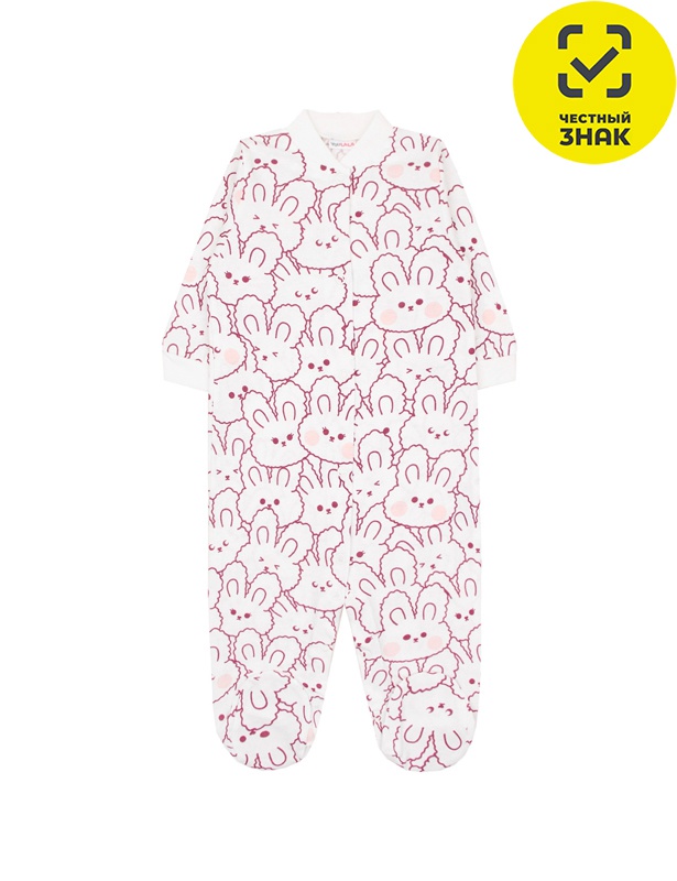 Комбинезон ясельный из набивного полотна, длинный открытый рукав на манжете, центральная застежка на кнопках, воротник-стойка, закрытая ножка.