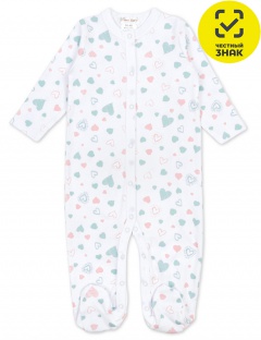 Комбинезон ясельный из набивного полотна, длинные рукава, застежка на кнопки по центру и шаговому шву, воротник окантован, закрытые ножки.