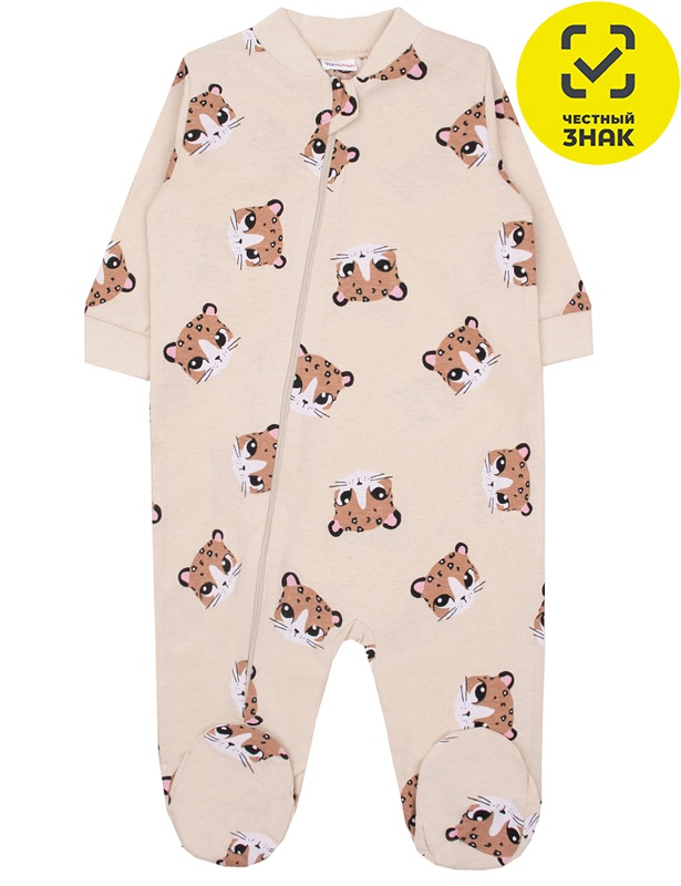 Комбинезон ясельный из набивного полотна, длинный открытый рукав, смещенная застежка на молнию, воротник-стойка, закрытая ножка.