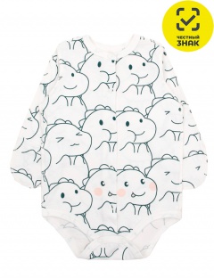 Боди ясельное из кулирки, с длинными втачными рукавами с царапками, застежка на кнопки центральная и по низу, округлая горловина