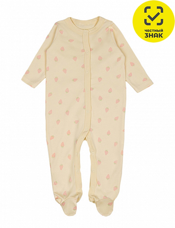 Комбинезон ясельный из набивного хлопкового полотна, с застежкой на кнопки по центру и по шаговому шву, закрытая ножка.