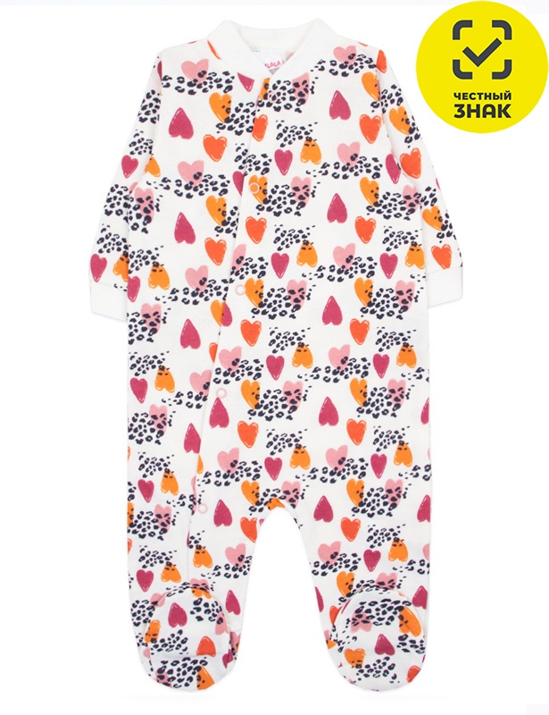 Комбинезон ясельный из набивного футера двухнитки с начесом, длинный открытый рукав на манжете, асимметричная застежка на кнопках, воротник-стойка, закрытая ножка.