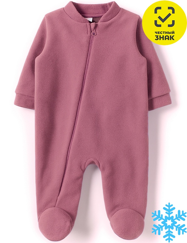 Комбинезон ясельный из флиса, длинный открытый рукав на манжете, асимметричная застежка на молнию, воротник-стойка, закрытая ножка.