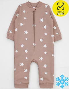 Комбинезон ясельный из набивного футера трехнитки с начесом, длинный открытый рукав с манжетом, центральная застежка на молнию, воротник-стойка, открытая ножка.