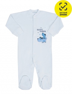 Комбинезон ясельный из интерлока, с застежкой на кнопки по центру и по шаговому шву, закрытая ножка, рукава длинные с манжетами, на полочке печать. Представлен в двух вариантах печати.