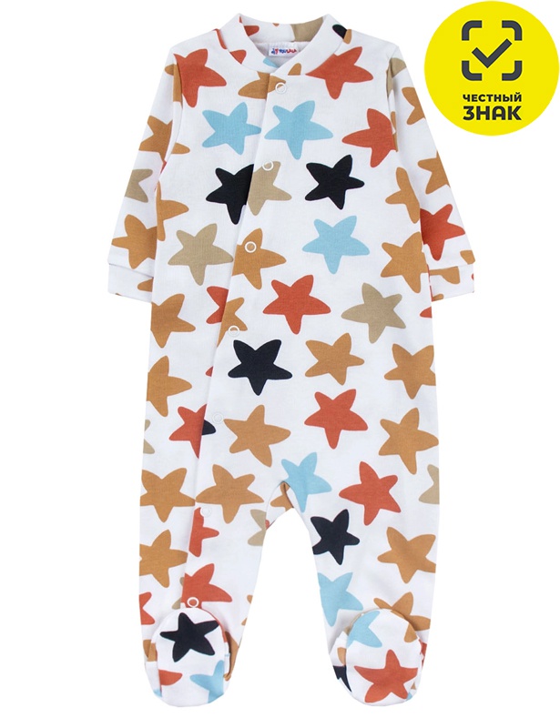 Комбинезон ясельный из набивного полотна, длинный открытый рукав, смещенная застежка на молнию, воротник-стойка, закрытая ножка.