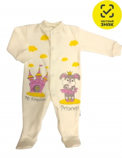 Комбинезон из футера, с длинными рукавами на манжетах, с закрытыми ножками, на центральной застёжке на кнопки, с воротником стойкой, на полочке принт.