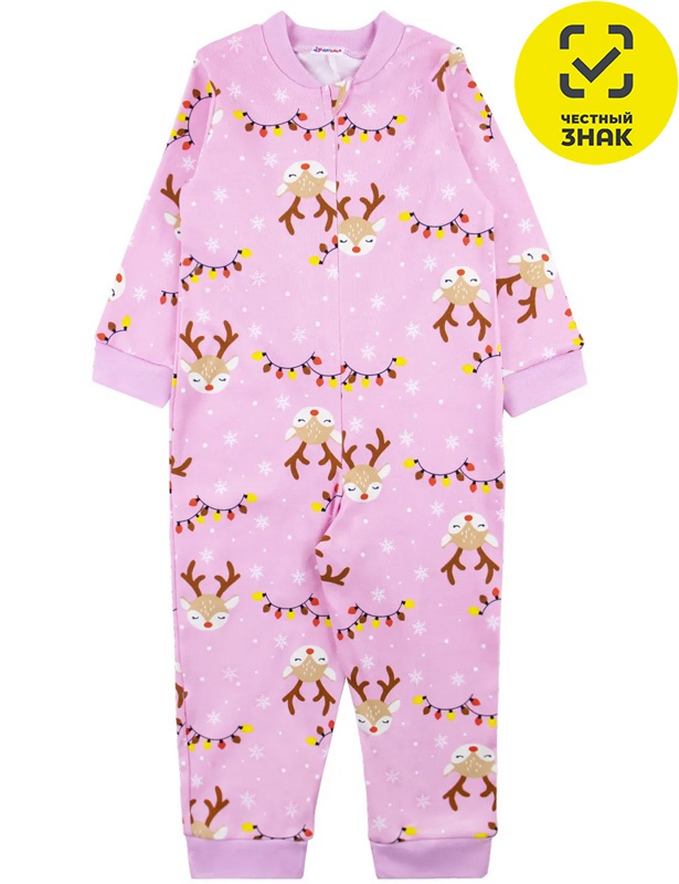 Комбинезон ясельный из набивного полотна, длинный открытый рукав с манжетом, центральная застежка на молнию, воротник-стойка, открытая ножка на манжете.