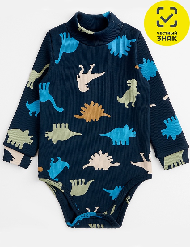 Боди ясельное из набивного полотна кашкорсе, с длинными втачными рукавами, застежка на кнопки, горловина «гольф».