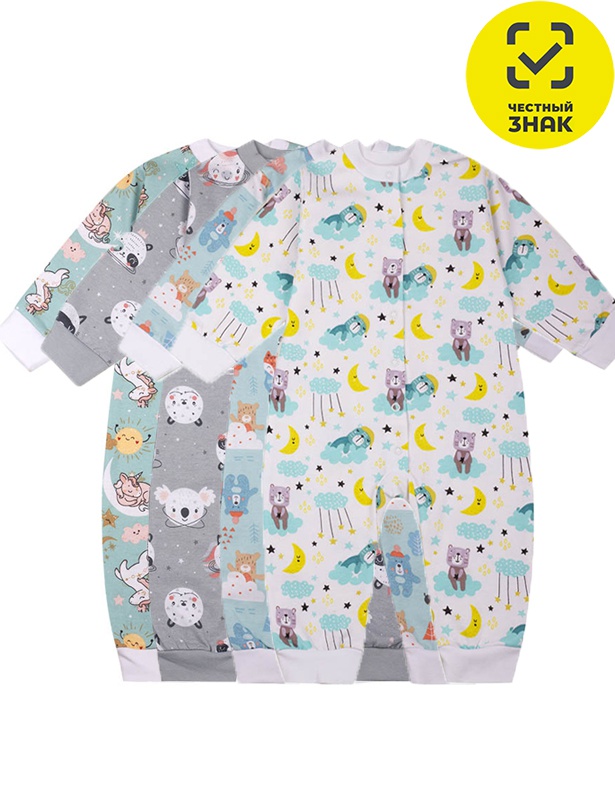 Ясельный комбинезон из набивного футера, длинный рукав, застежка по центру на кнопках, воротник и манжеты выполнены из рибаны с лайкрой