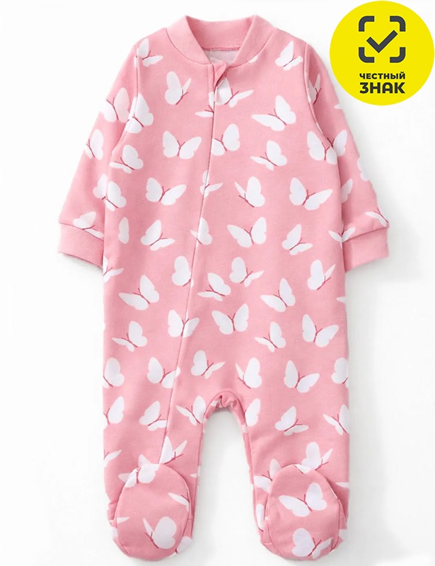 Комбинезон ясельный из набивного полотна, длинный открытый рукав с манжетом, смещенная застежка на молнию, воротник-стойка, закрытая ножка.