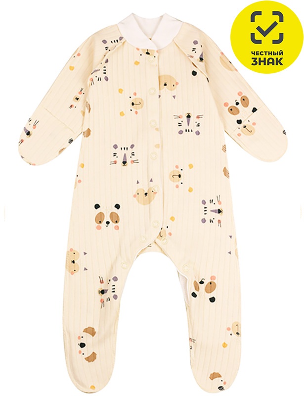 Комбинезон ясельный швы наружу из набивного интерлока, длинный закрытый рукав, застежка на кнопках по центру.