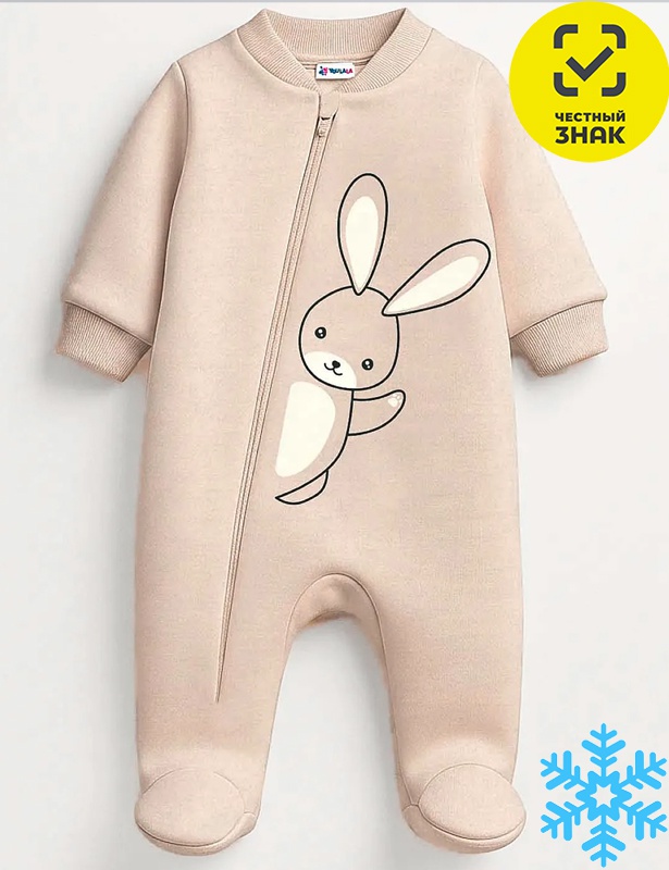 Комбинезон ясельный из футера трехнитки с начесом, длинные втачные рукава на манжете, ассиметричная застежка на молнию, воротник-стойка, закрытая ножка, декорирован принтом.