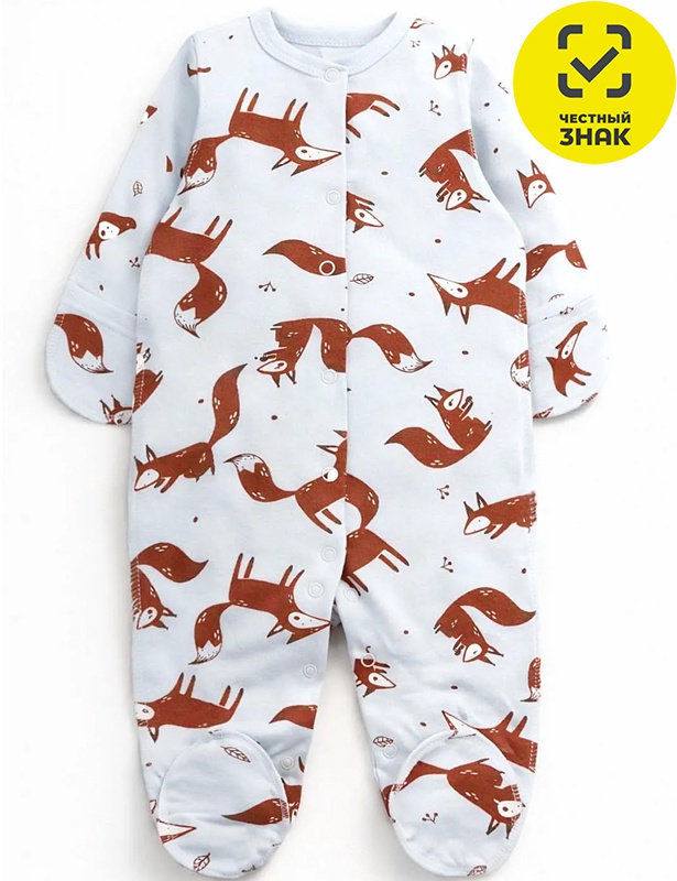 Комбинезон ясельный из футера 2х нитки с начесом, длинные закрытые рукава, центральная застежка на кнопки, закрытая ножка.