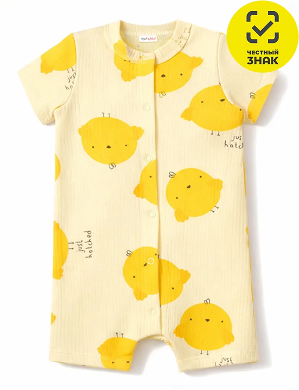 Песочник ясельный из набивного полотна лапша, рукава короткие, округлая горловина окантована бейкой, застежка на кнопки по центру.