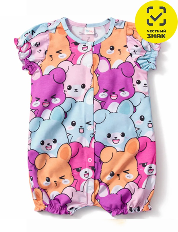 Песочник ясельный из набивного полотна, рукава короткие, округлая горловина окантована бейкой, застежка на кнопки по центру.