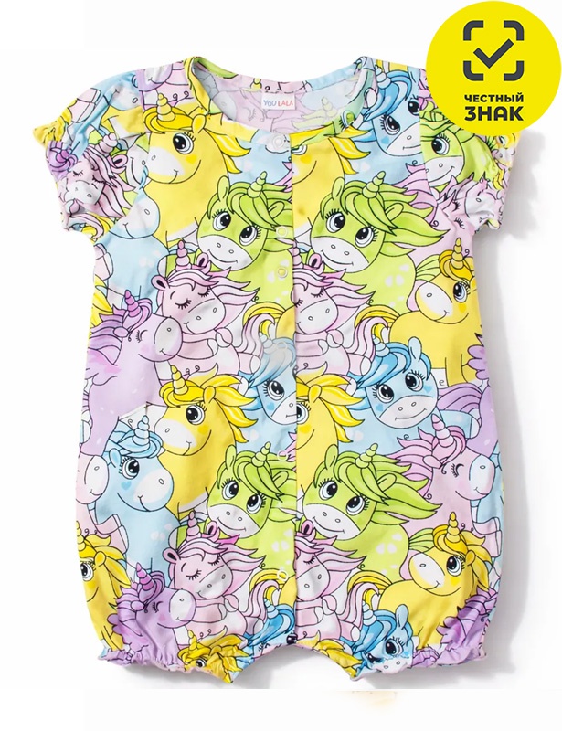 Песочник ясельный из набивного полотна, рукава короткие, округлая горловина окантована бейкой, застежка на кнопки по центру.