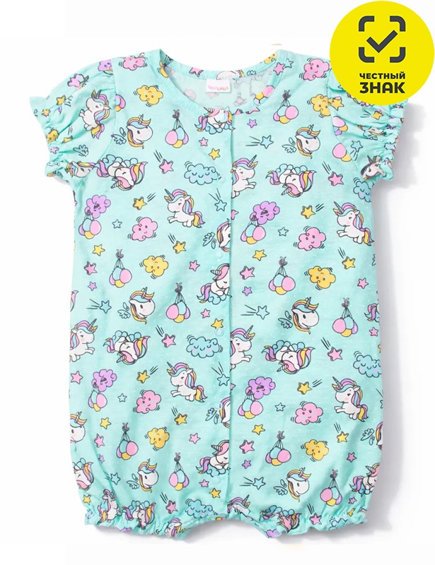 Песочник ясельный из набивного полотна, рукава короткие, округлая горловина окантована бейкой, застежка на кнопки по центру.