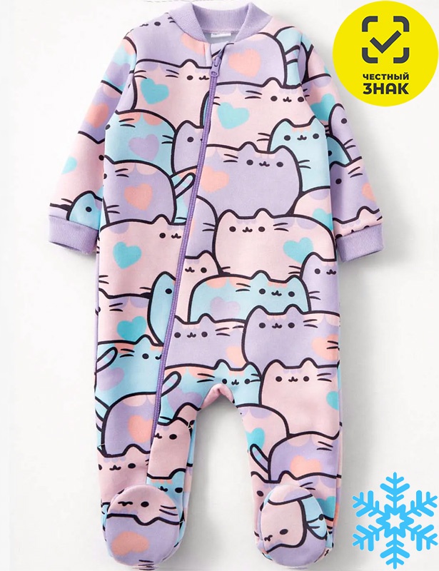 Комбинезон ясельный из набивного футера трехнитки с начесом, длинные втачные рукава на манжете, ассиметричная застежка на молнию, воротник-стойка, закрытая ножка.