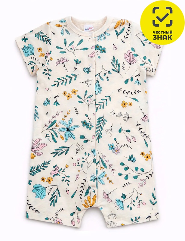 Песочник из набивного полотна, с короткими рукавами, застежка на кнопки спереди.