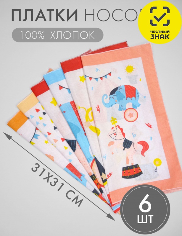 Платок носовой размером 31*31 см. Цена за упаковку, продажа по оптовым ценам осуществляется упаковками, 6 шт в упаковке.