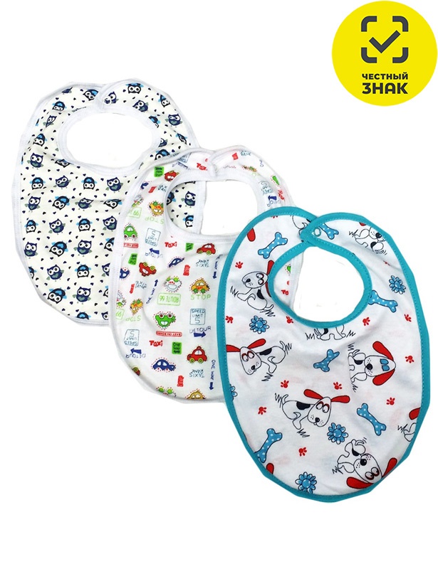 Производитель: ТМ Рекантино Артикул: Б109/Микс Нагрудник с кнопкой Пол: унисекс Полотно: кулирная гладь Состав: хлопок 100% Возраст: 0-2