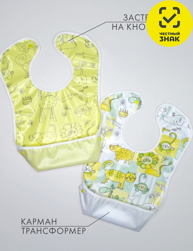 Производитель: ТМ Шалун Артикул: А694/2 Набор нагрудных фартуков (лимонный) Пол: унисекс Полотно: клеёнка Состав: 50% пэ, 50% ПВХ Возраст: 0-2