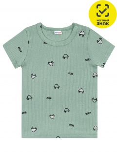 Футболка для мальчика из рибаны, с короткими втачными рукавами, округлым вырезом горловины с застежкой на кнопку.
