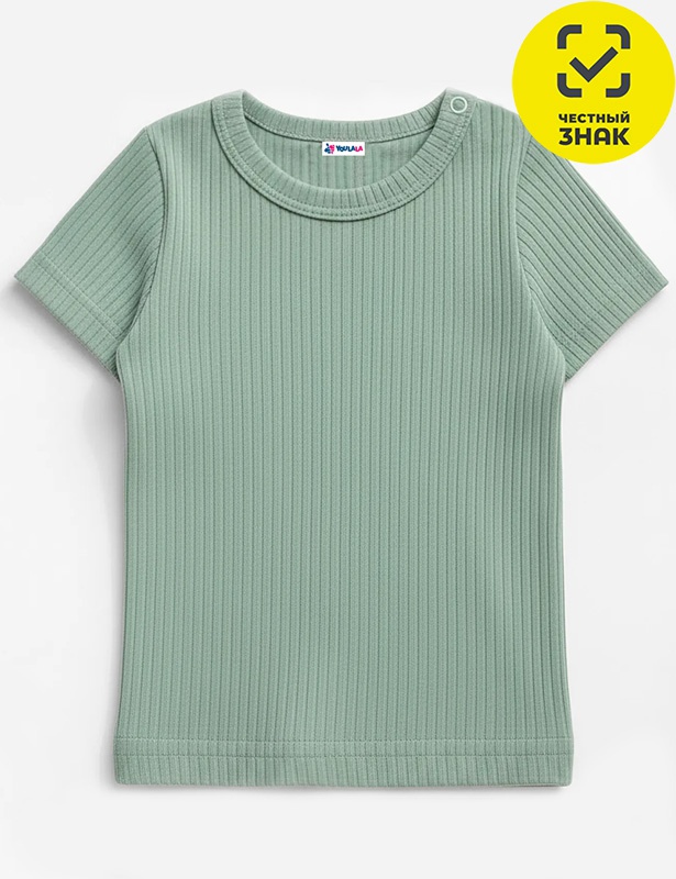 Футболка из полотна "лапша", с короткими втачными рукавами, округлый вырез горловины с застежкой на кнопку.