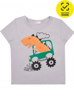 Футболка ясельная из гладкокрашеного полотна, короткие втачные рукава, округлый вырез горловины, окантованный бейкой из основного полотна, застежка по плечу на кнопки, на полочке печать.