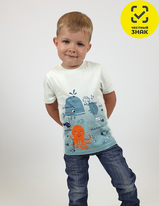 Футболка для мальчика - прямой силуэт, короткий втачной рукав. Горловина обработана ластиком. Печать на переде.