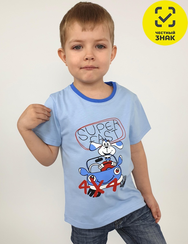 Футболка для мальчика - прямой силуэт, короткий втачной рукав. Горловина обработана ластиком контрастного цвета. Печать на переде.
