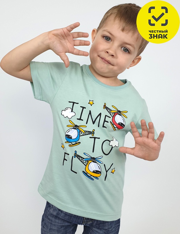 Футболка для мальчика - прямой силуэт, короткий втачной рукав. Горловина обработана ластиком. Печать на переде.
