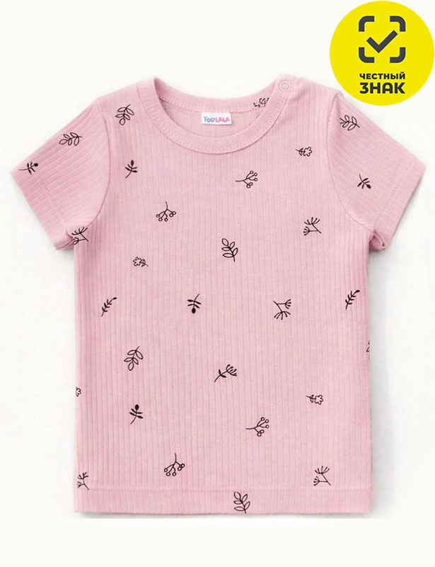 Футболка ясельная из набивного полотна лапша, короткие втачные рукава, округлый вырез горловины, окантованный бейкой из основного полотна, застежка по плечу на кнопки.