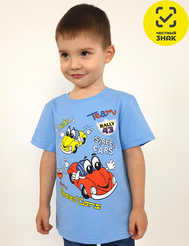 Футболка для мальчика - прямой силуэт, короткий втачной рукав. Горловина обработана ластиком. Печать на переде.