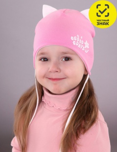 Шапка детская на сезон осень-весна, хлопковая двухслойная, на завязках, декор – ушки и принт с надписью "Good Days".