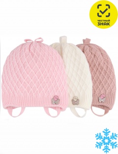 Теплая шапка для девочки, на завязках, с хлопковым подкладом и утеплителем «синтепон».