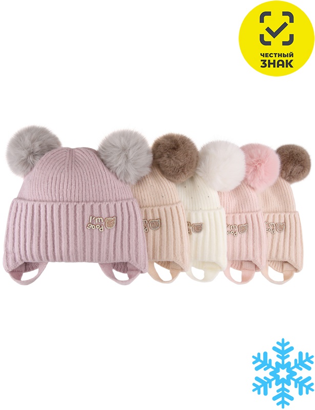 Производитель: ТМ Теплыши Артикул: M-07-60 Шапка для девочки Пол: девочка Полотно: вязаное полотно Состав: 30% шерсть, 70% акрил, подклад: 95% хб, 5% эл Возраст: 0-2