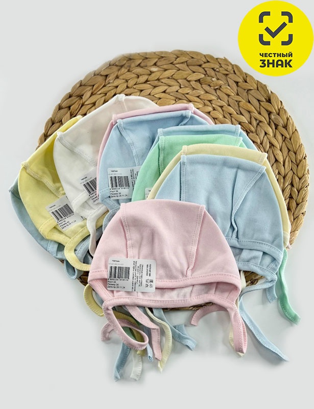 Производитель: ТМ Amelli Артикул: Чепчик КЛ.001.003.0.0.005 Пол: унисекс Полотно: футер начес Состав: хлопок 100% Возраст: 0-2