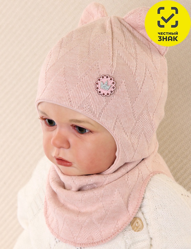 Производитель: ТМ Теплыши Артикул: NT-05-98 Шапка-шлем для девочки Пол: девочка Полотно: вязаное полотно Состав: 30% шерсть, 70% акрил, подклад: 95% хб, 5% эл Возраст: 0-2