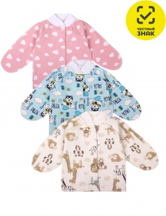 Кофточка ясельная швы наружу из набивного и гладкого интерлока, без печати, длинный рукав, застежка на кнопках по центру, ластик горловины из рибаны х/б.